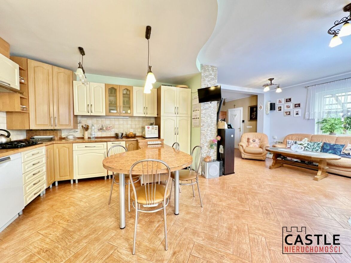 Do części mieszkalnej przylega część handlowo-usługowa z zapleczem, którą ze spokojem można zaaranżować na pomieszczenia do zamieszkania.